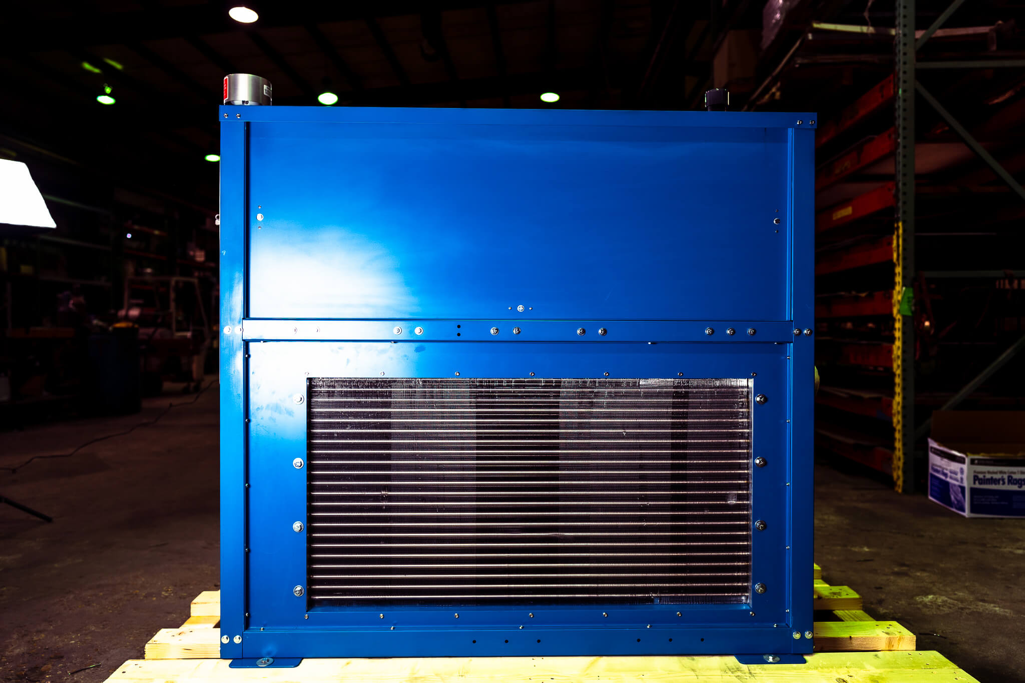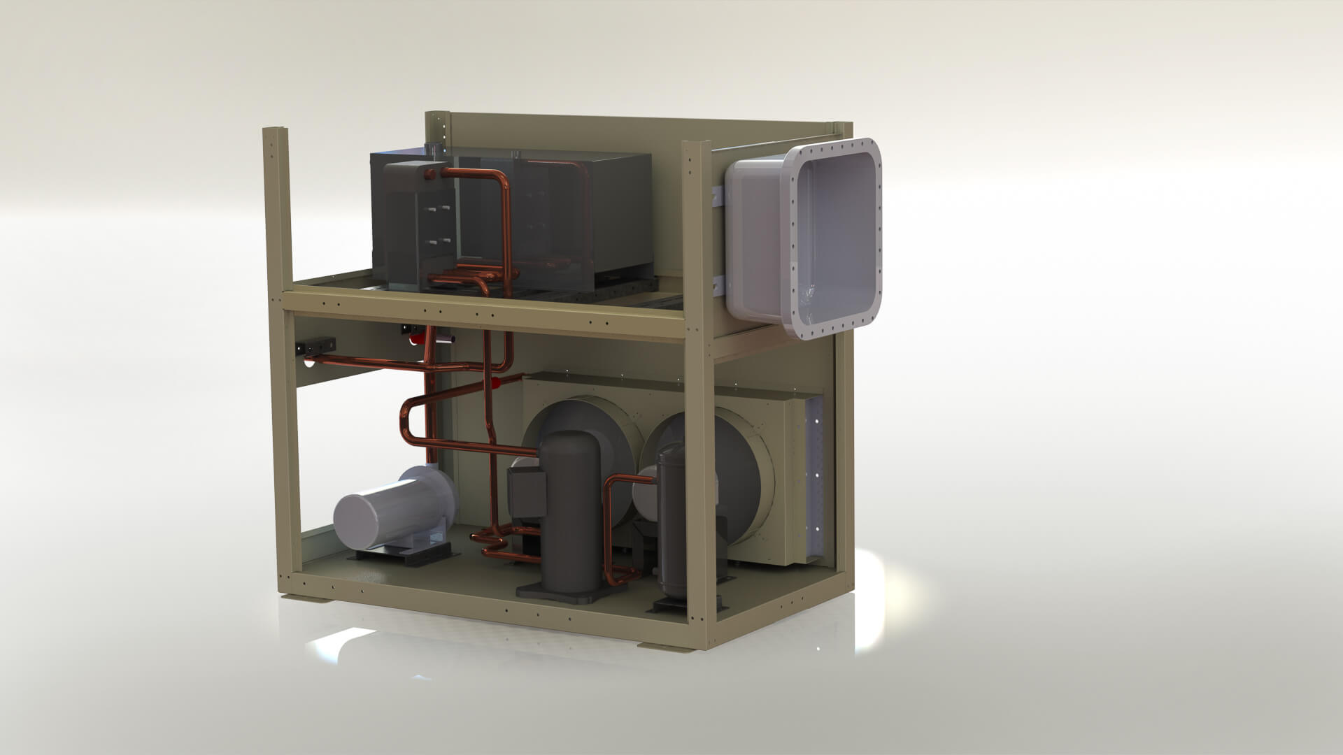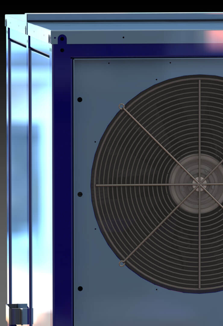 A industrial, structural steel frame helps protect your air-cooled chiller from impact damage, and removable steel panels allow access for routine inspection and maintenance. The frame includes mounting pads.