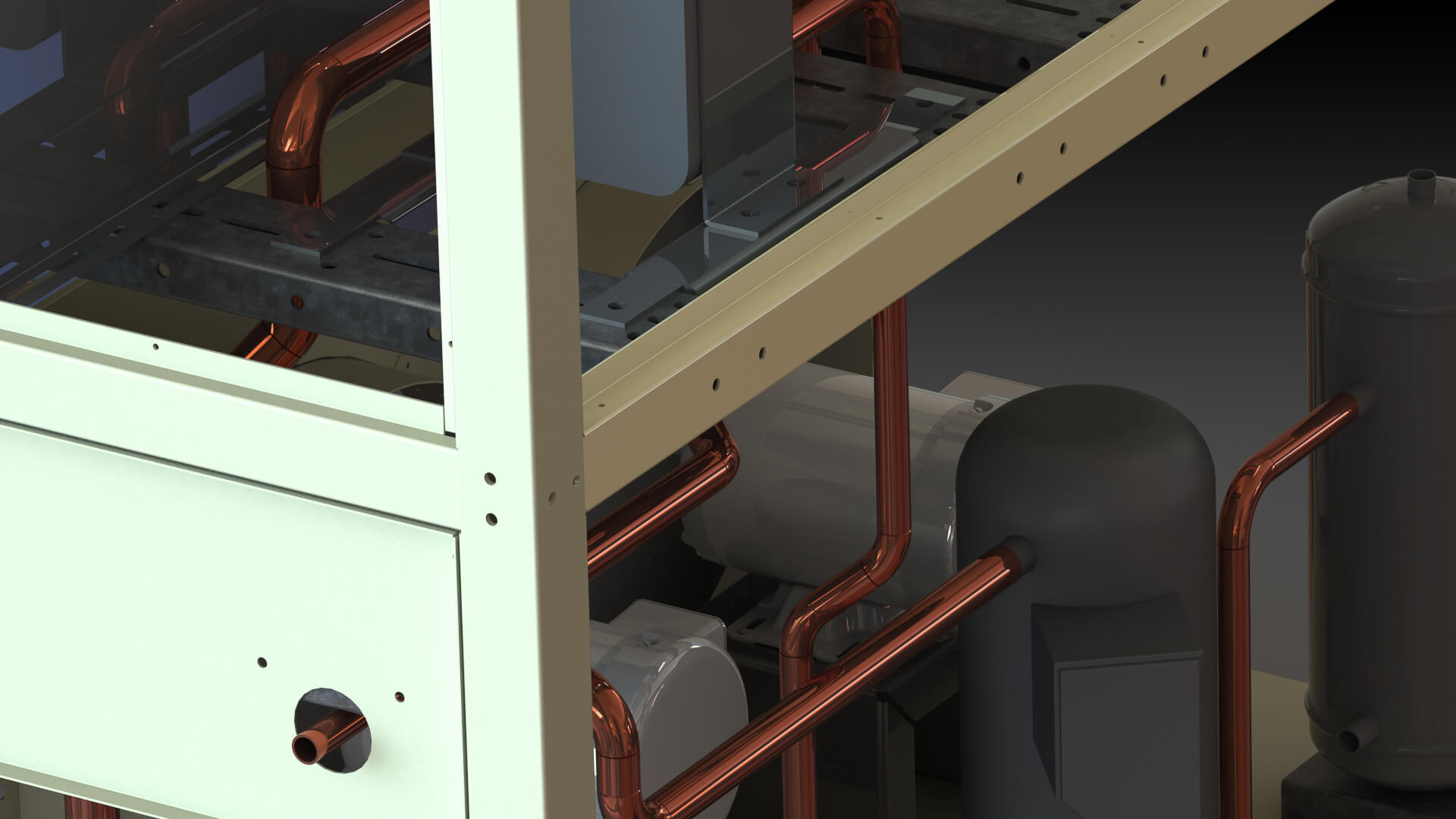 Extending throughout GCI air condensing chillers, our brazed copper piping is fully insulated, features bronze valves, and provides longevity, structural integrity, and protection against rust. Piping is optional for deionized water or food applications, stainless steel, or CPVC.