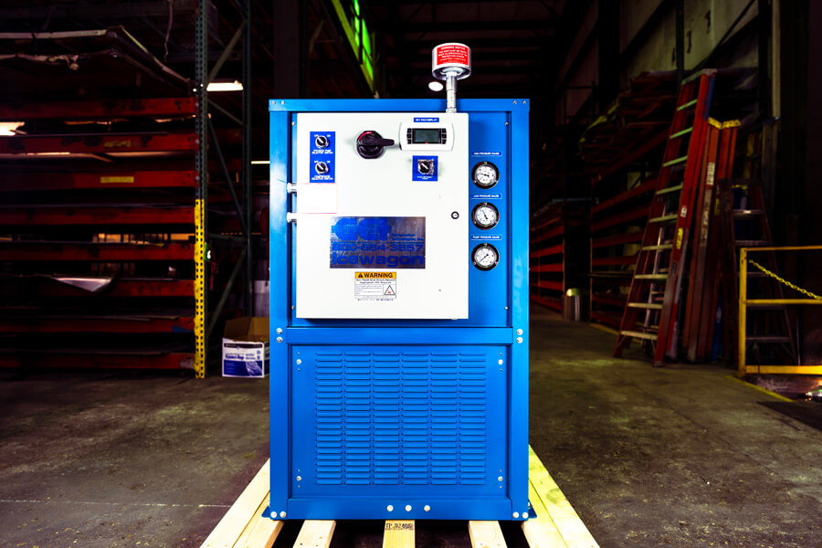 We make each of our chillers with our own standard components, and additional elements are available for industry-specific customization. Optional features include outdoor and split systems, fully stainless steel models for food production, deionized water systems, oversized tanks, special pumps, and currents, weatherproofing, and company-approved paint colors. Custom chillers are our specialty, so please call us about integrating your particular requirements.