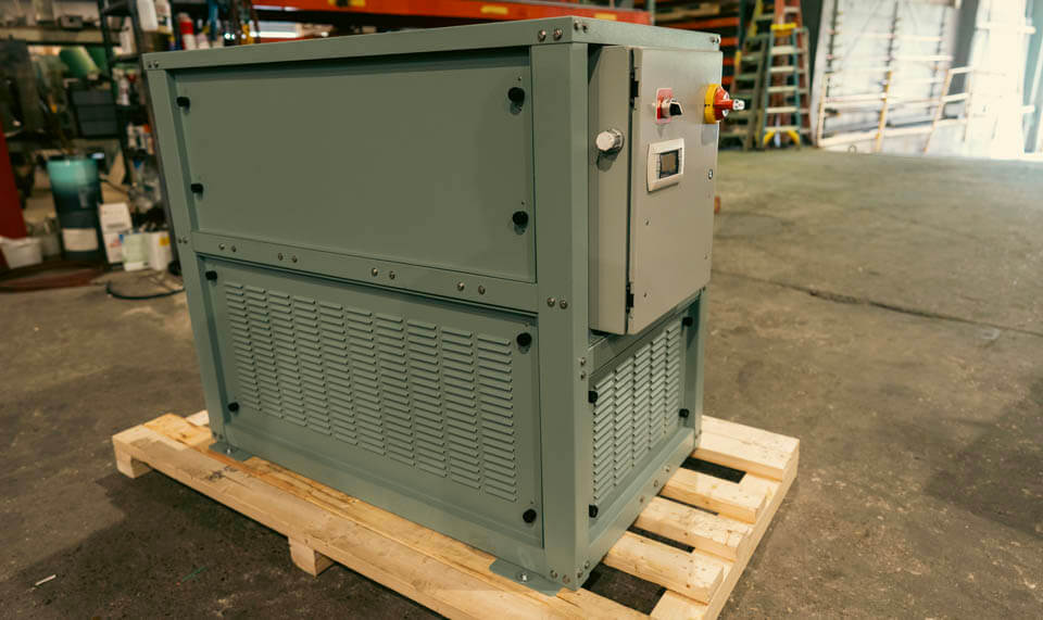 At GCI Refrigeration Technologies, our custom industrial water-cooled chillers accommodate a diverse range of industrial applications. Our DH chillers are available in both air-condensing and water-condensing designs. We offer explosion-proof and hazardous location application chillers. They can be classified as Division 1, 2, or no classification if none is required.