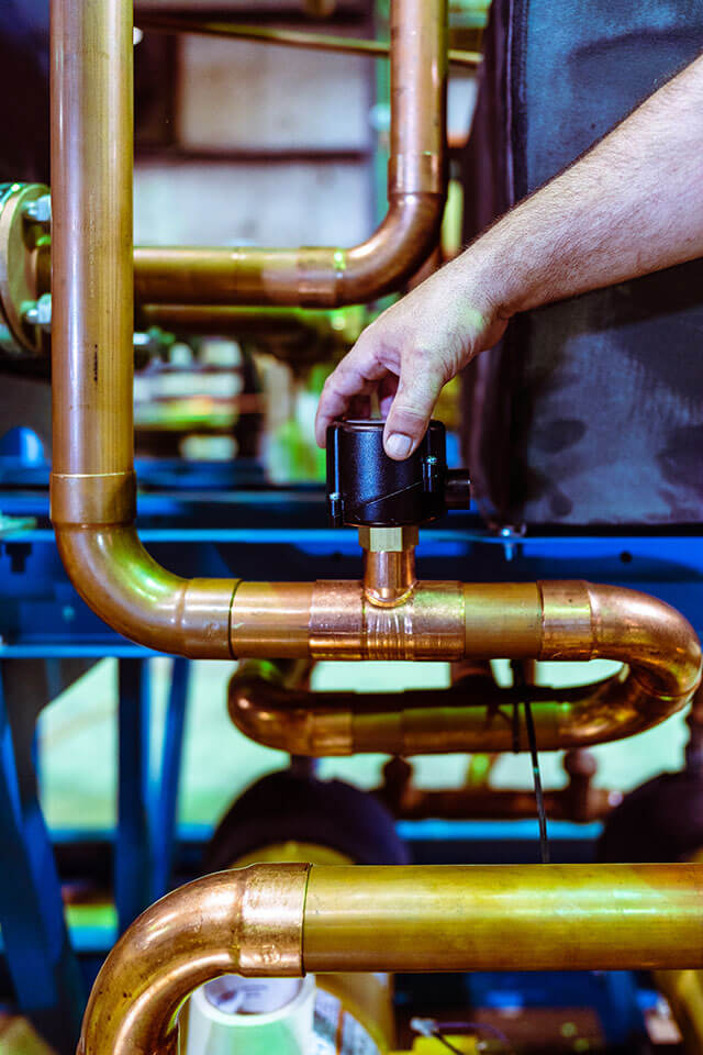 Extending throughout GCI industrial water-cooled chillers, our brazed copper piping is fully insulated, features bronze valves, and provides longevity, structural integrity, and protection against rust. Piping is optional for deionized water or food applications, stainless steel, or CPVC.