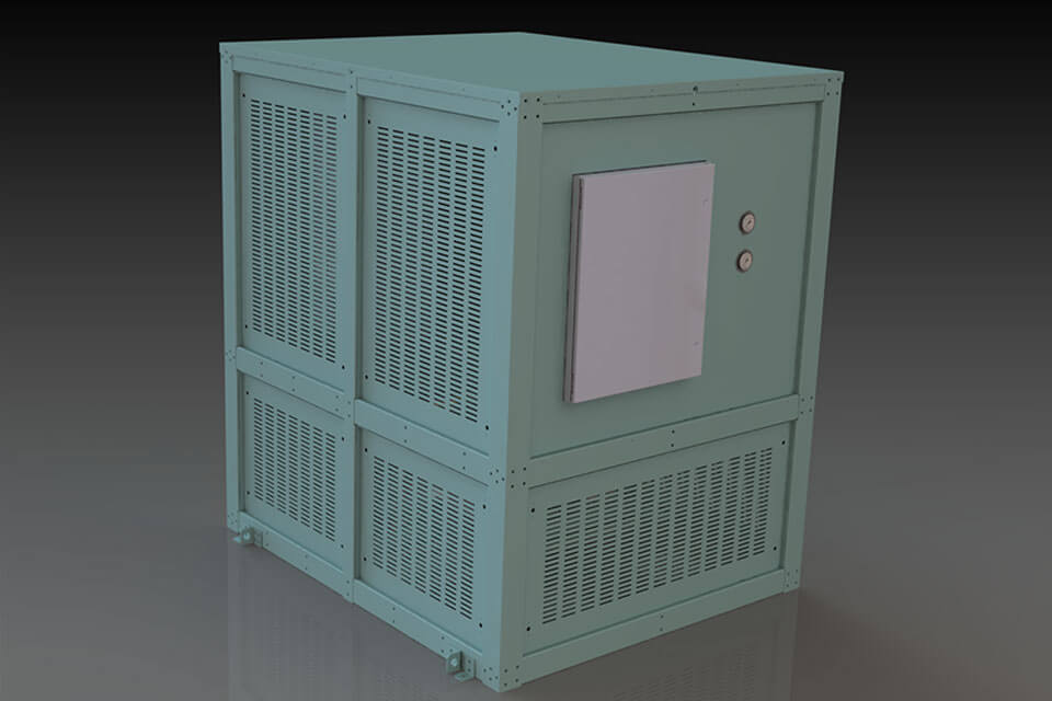 A industrial, structural steel frame helps protect your industrial water-cooled chiller from impact damage, and removable steel panels allow access for routine inspection and maintenance. The frame includes mounting pads.