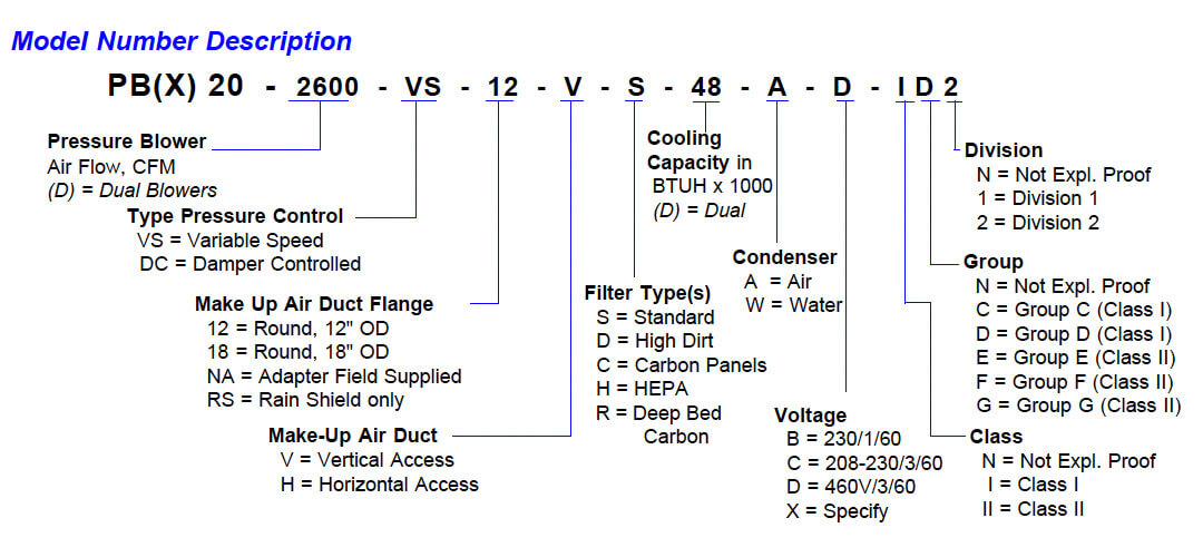 - Determine the PBX 10 Series model number using the description shown. For applications requiring airflow greater than 2600 CFM use Series PBX 15 or PBX 20.